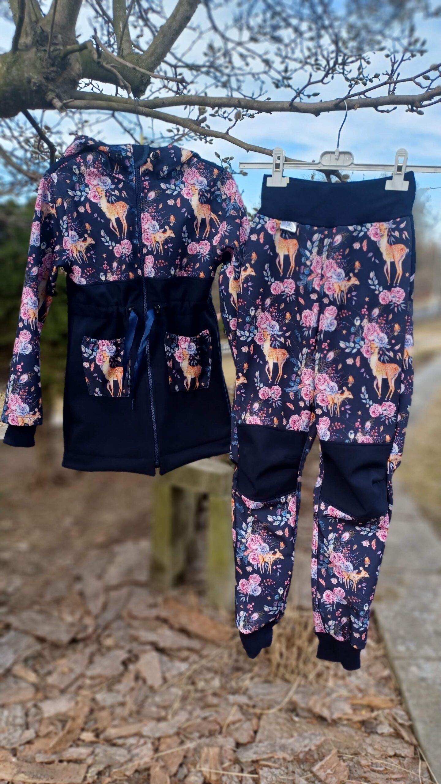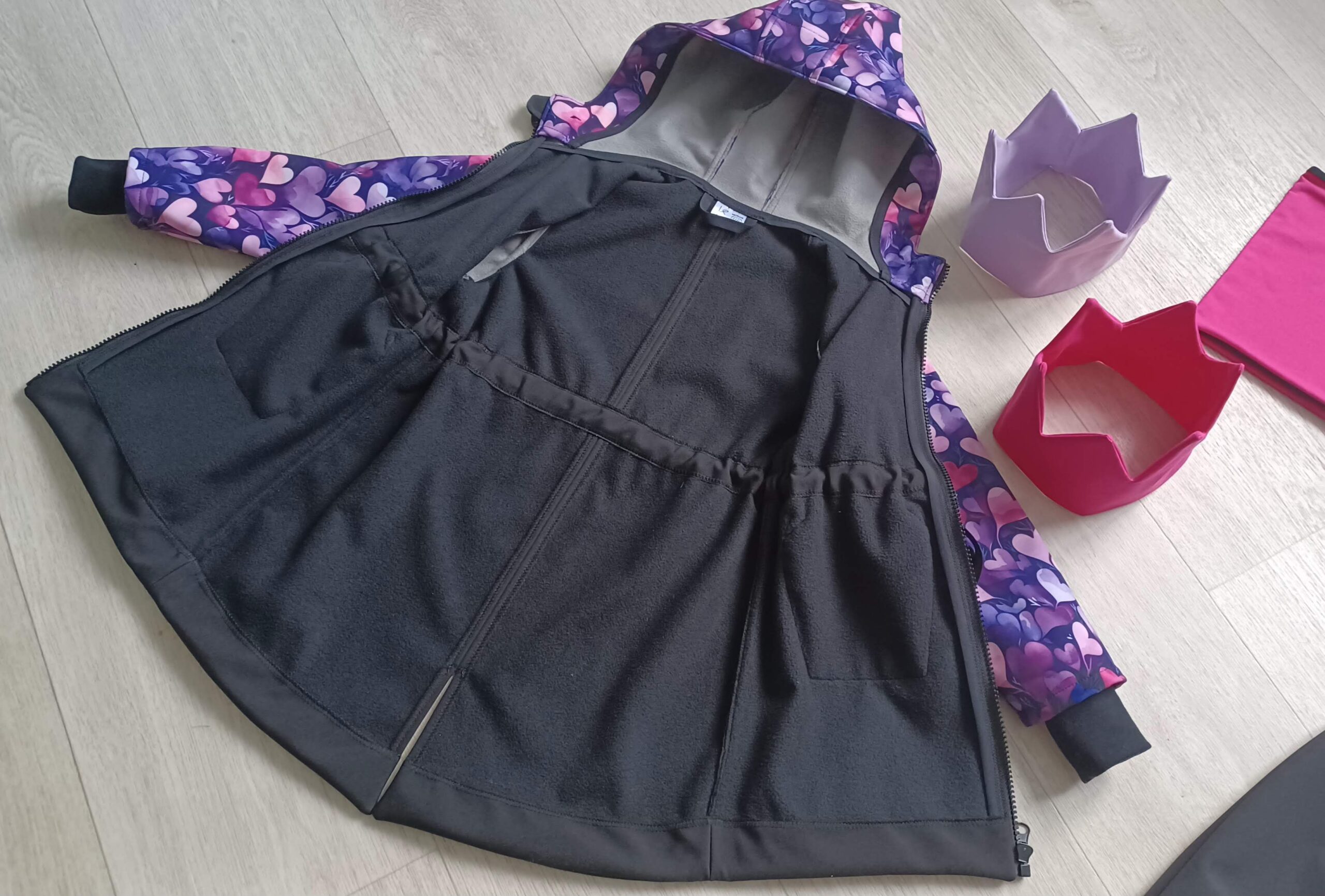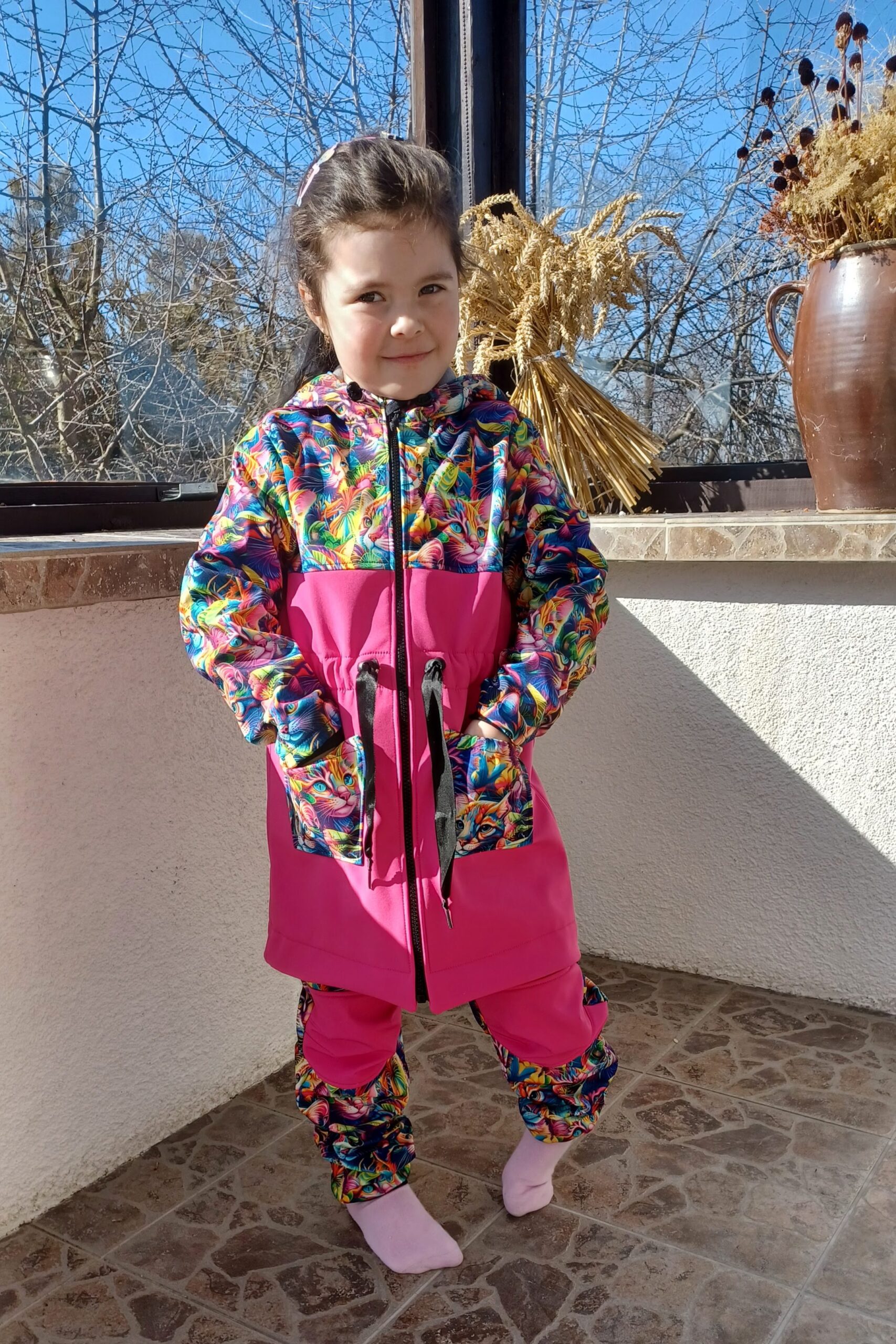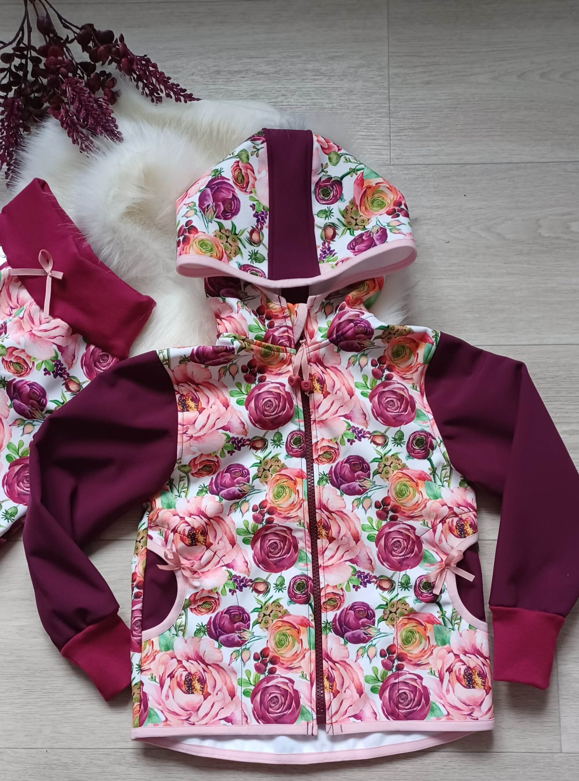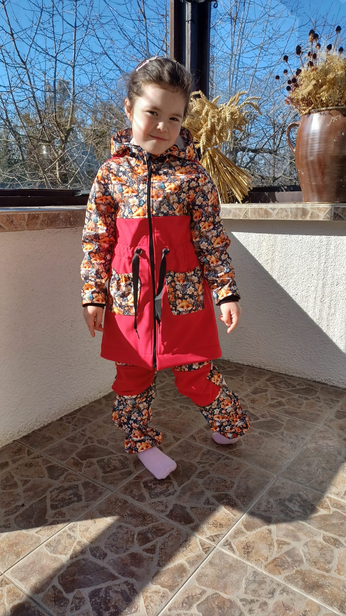Tvoří je rostoucí softshellová bunda/kabátek a rostoucí softshellové kalhoty případně i rukavice. Pro Ty z Vás, co máte opravdu rádi vyladěné setíky, nabízím i možnost ušití čepice či nákrčníku ve stejném designu.
