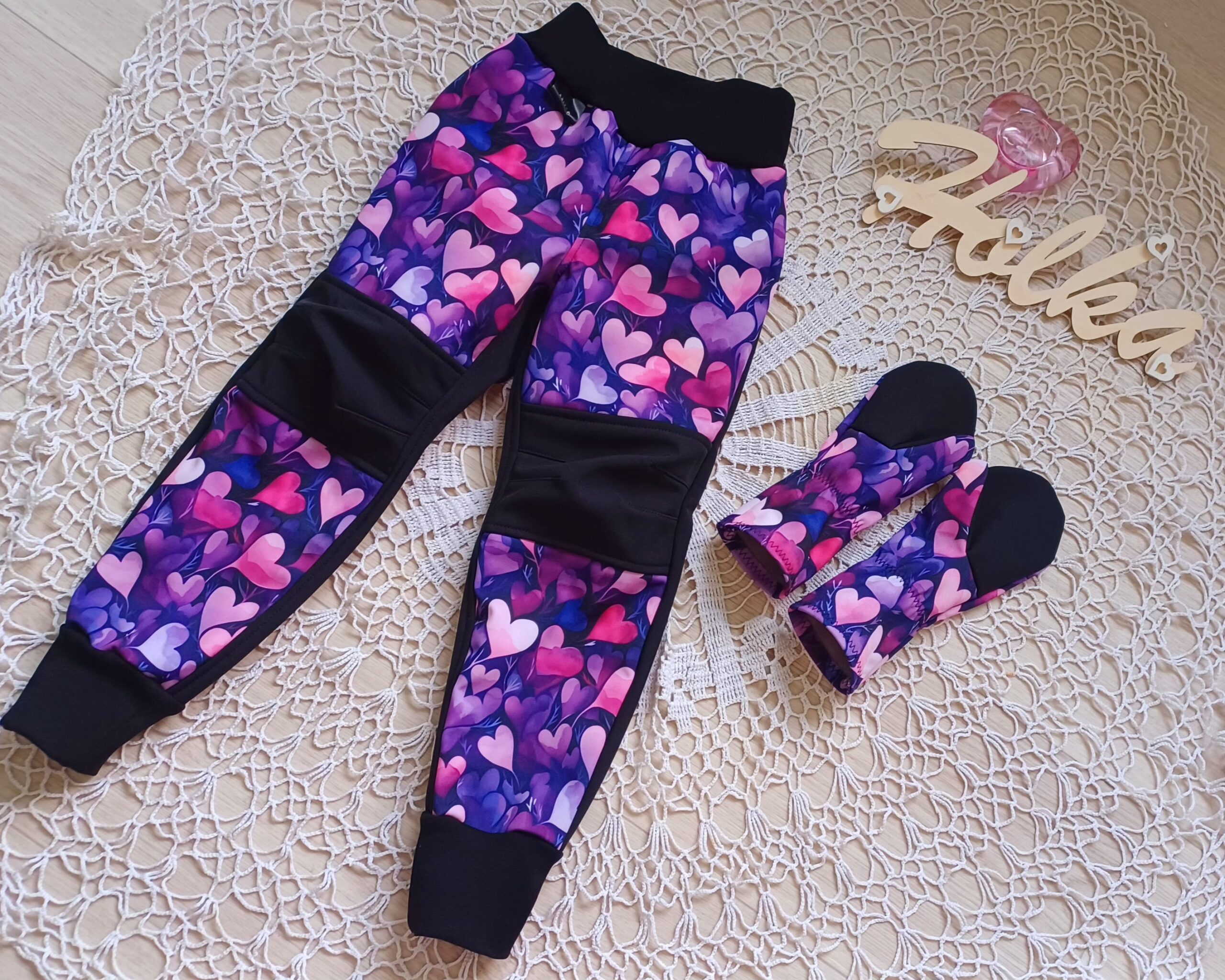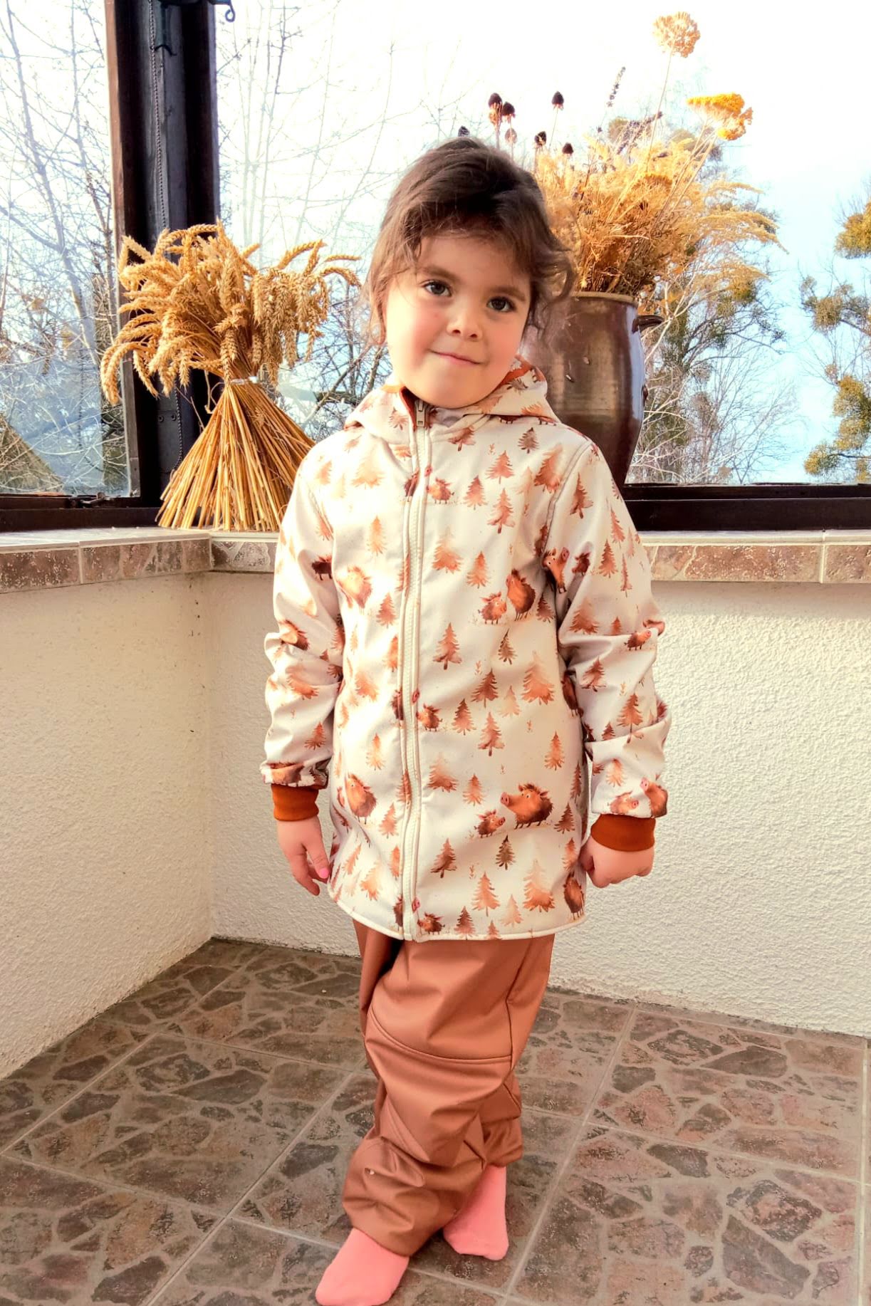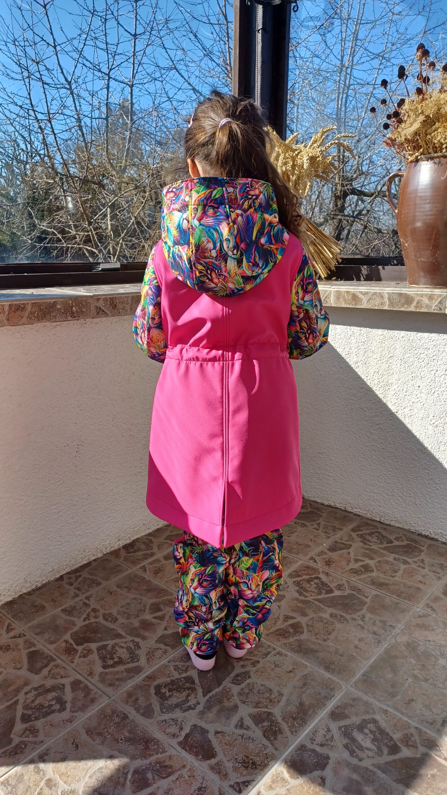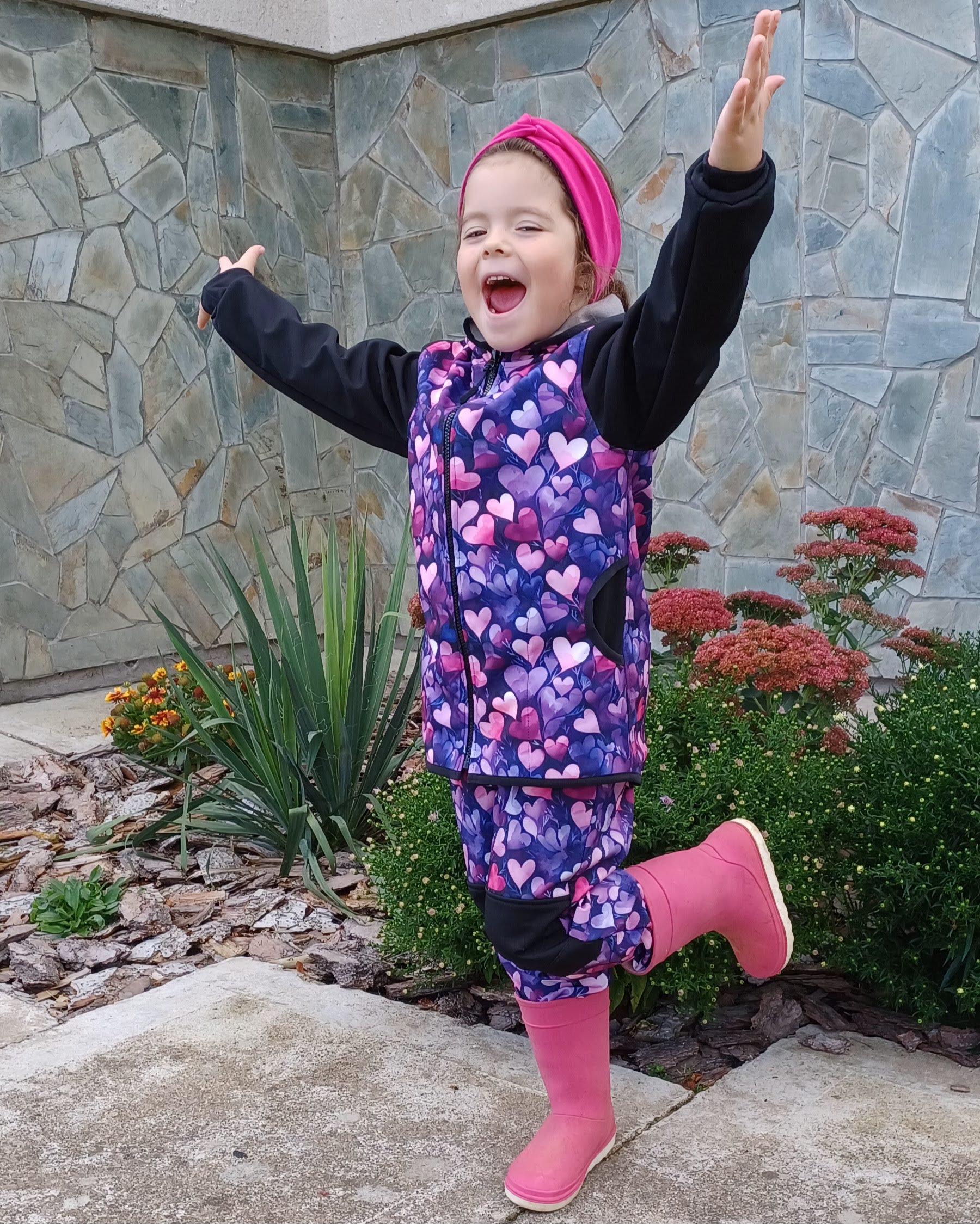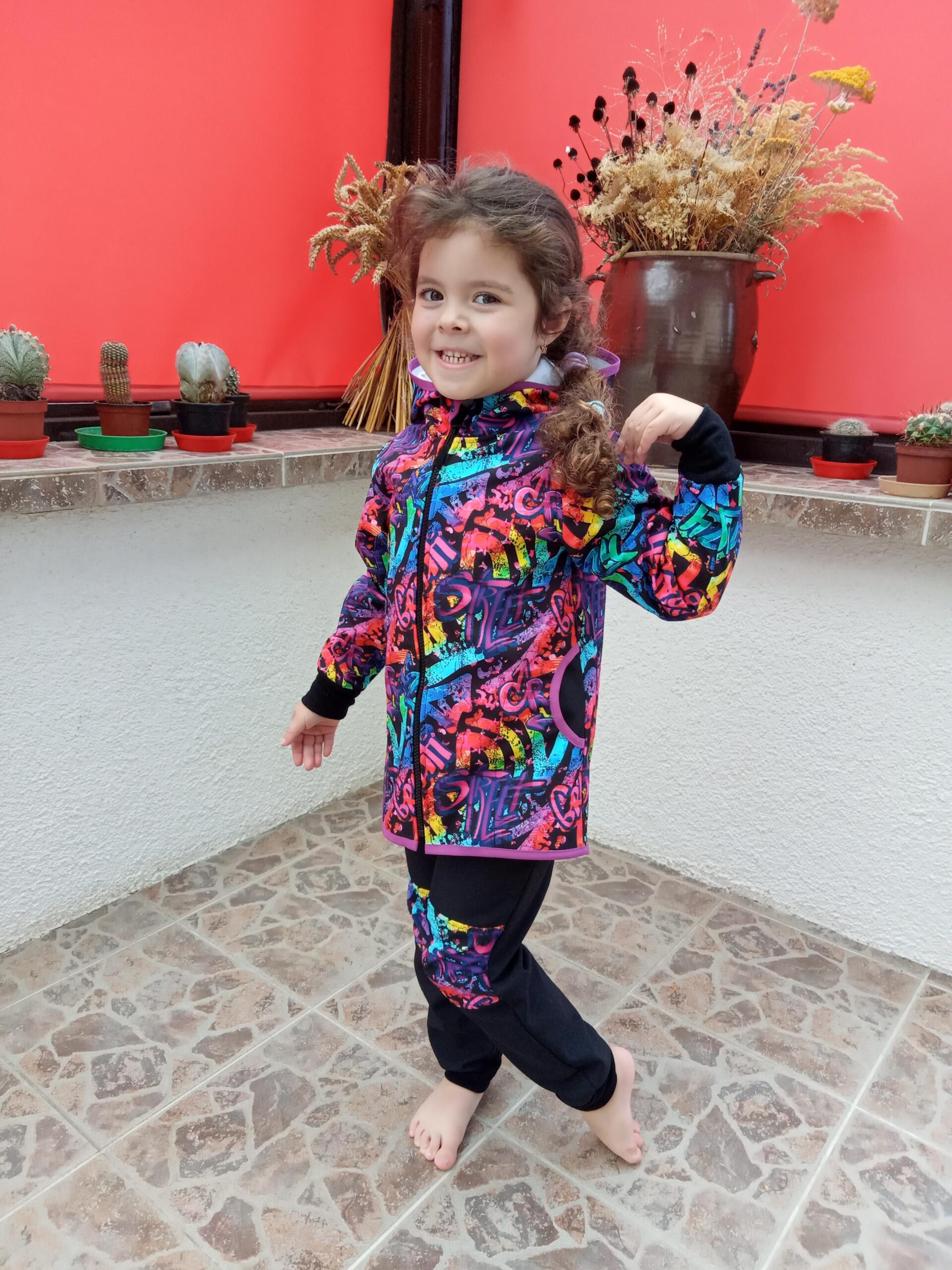 Tvoří je rostoucí softshellová bunda/kabátek a rostoucí softshellové kalhoty případně i rukavice. Pro Ty z Vás, co máte opravdu rádi vyladěné setíky, nabízím i možnost ušití čepice či nákrčníku ve stejném designu.