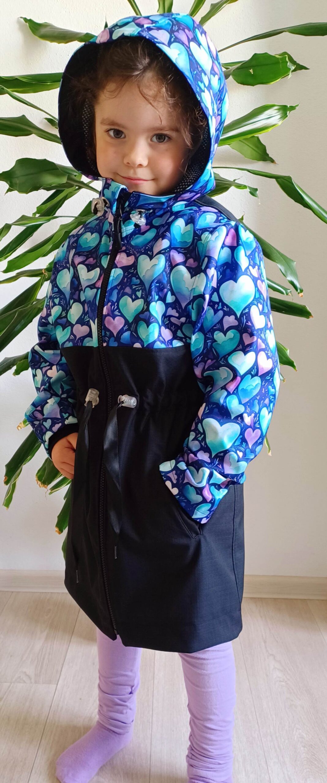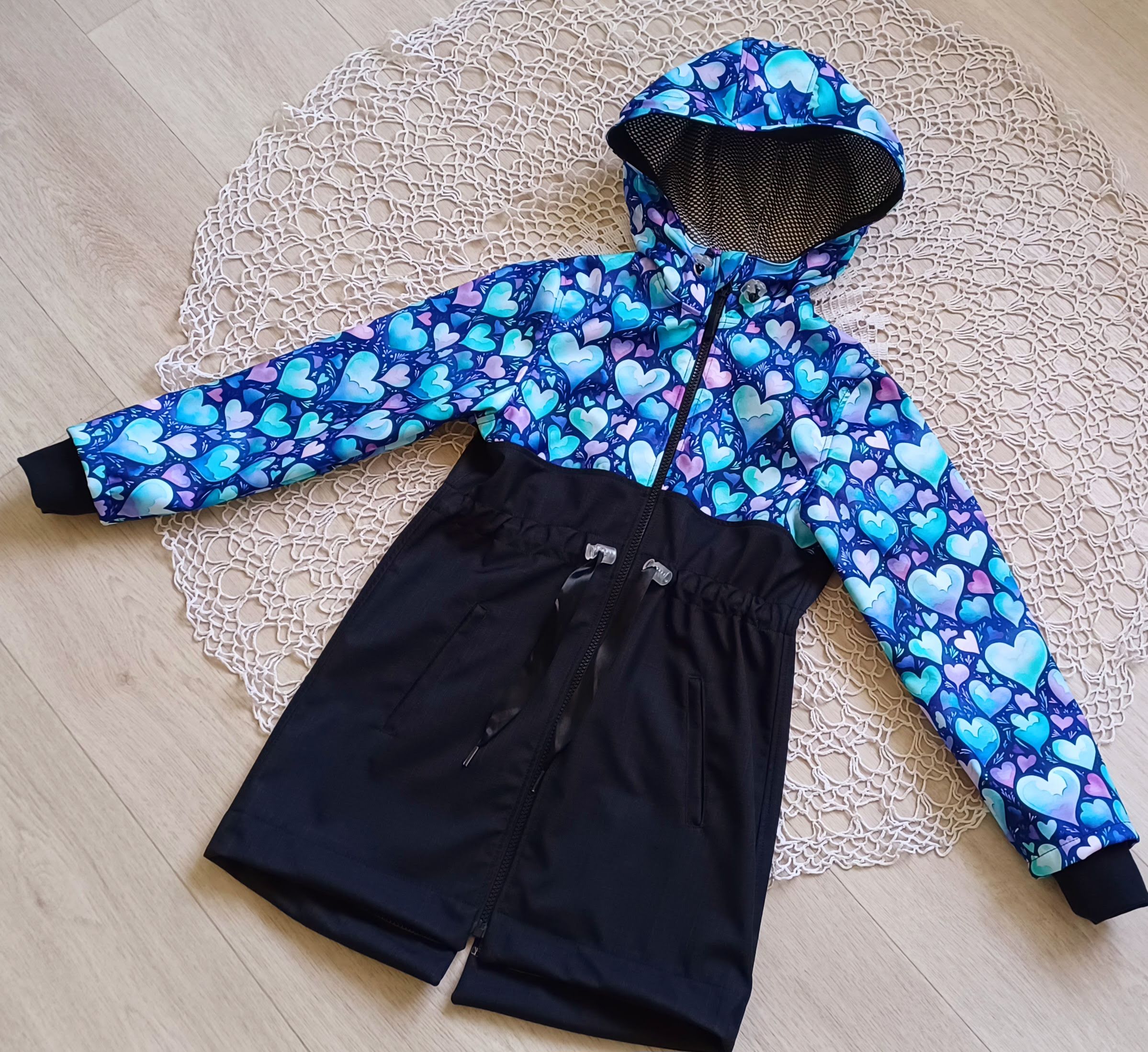 Tento střih je skutečně VYTUNĚNÝ - regulace v pase pomocí šňůrky, regulace kapuci pomocí gumičky, rostoucí krytý náplet, zadní díl do obloučku s rozparkem pro snadný pohyb.