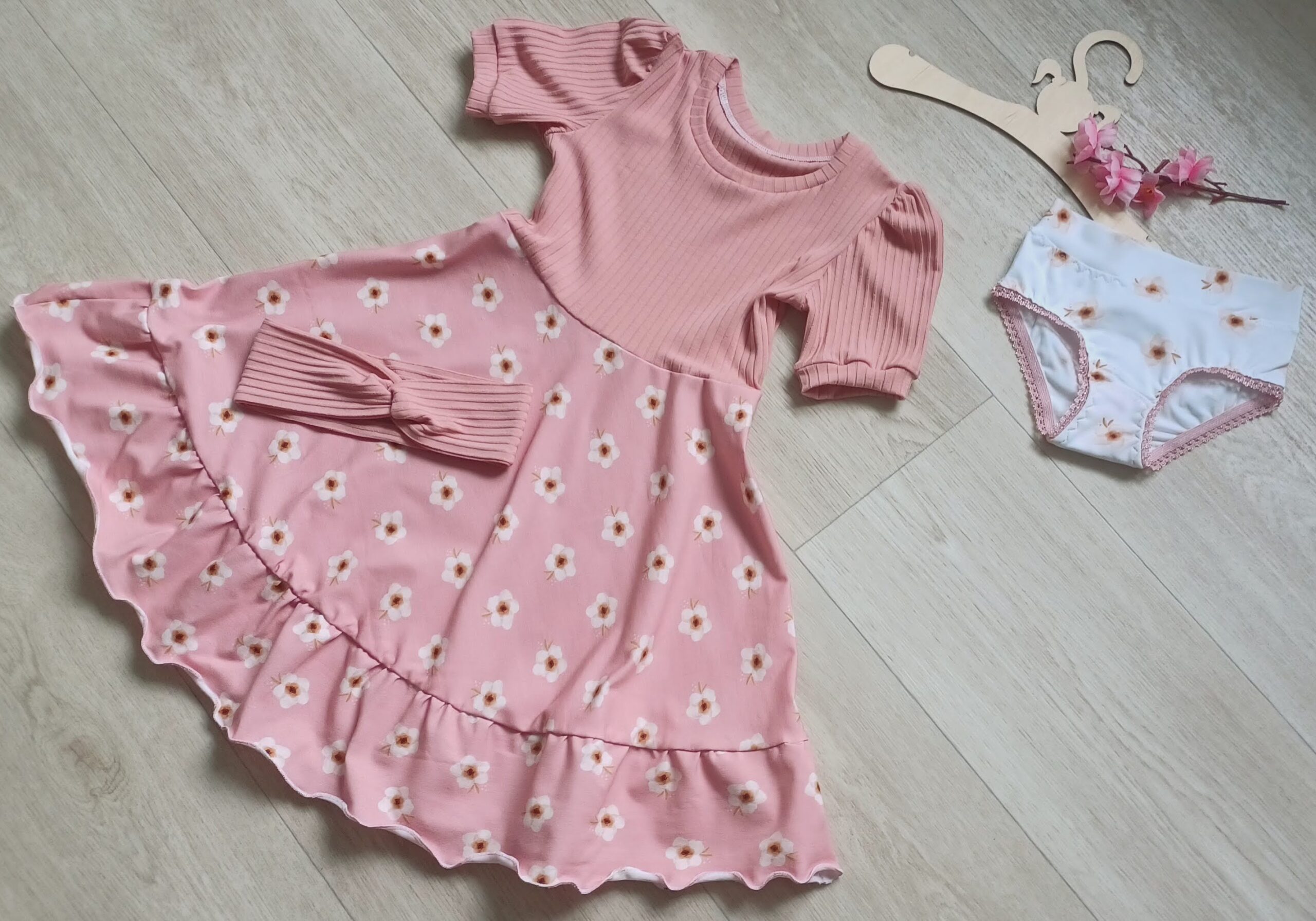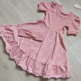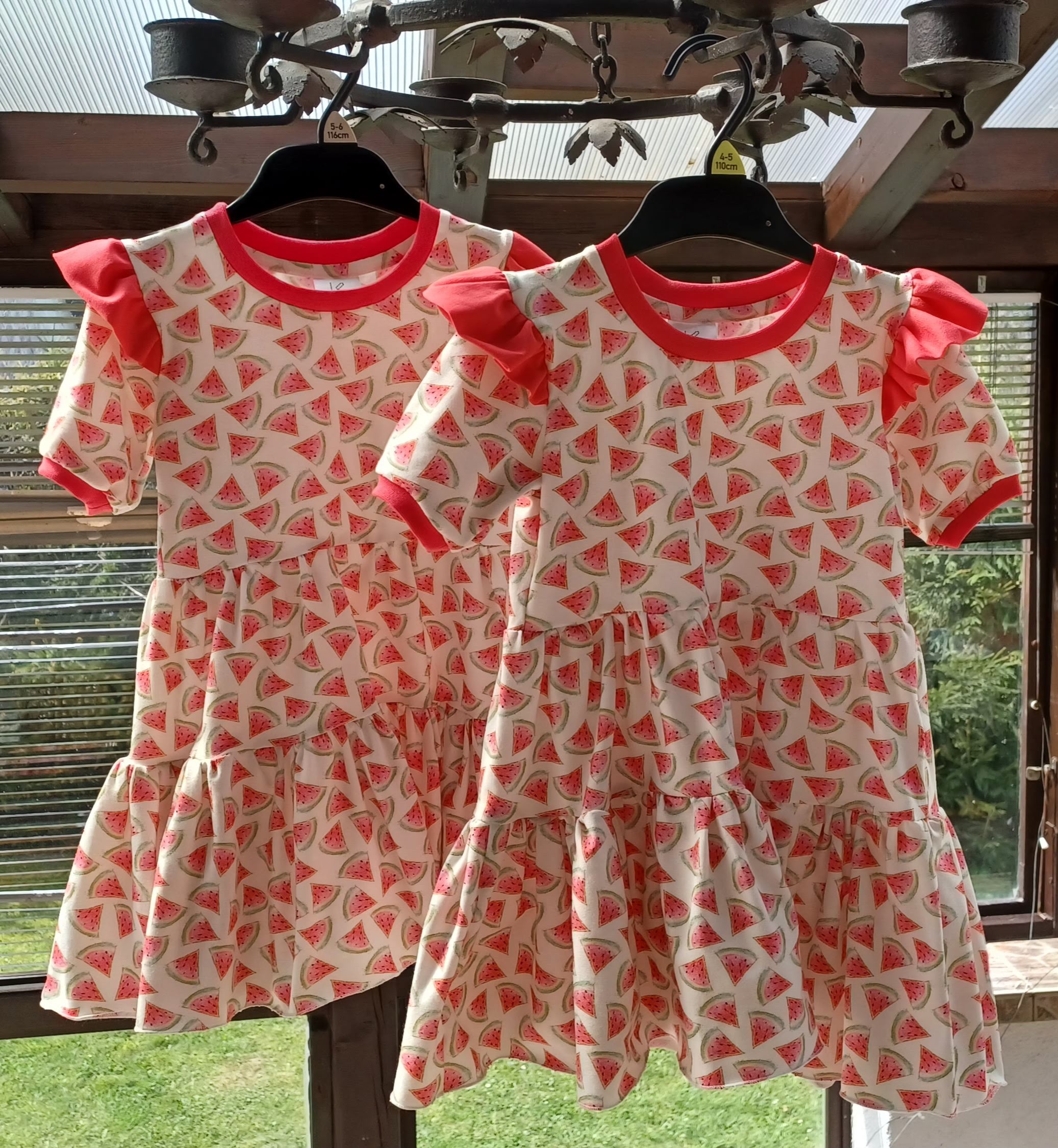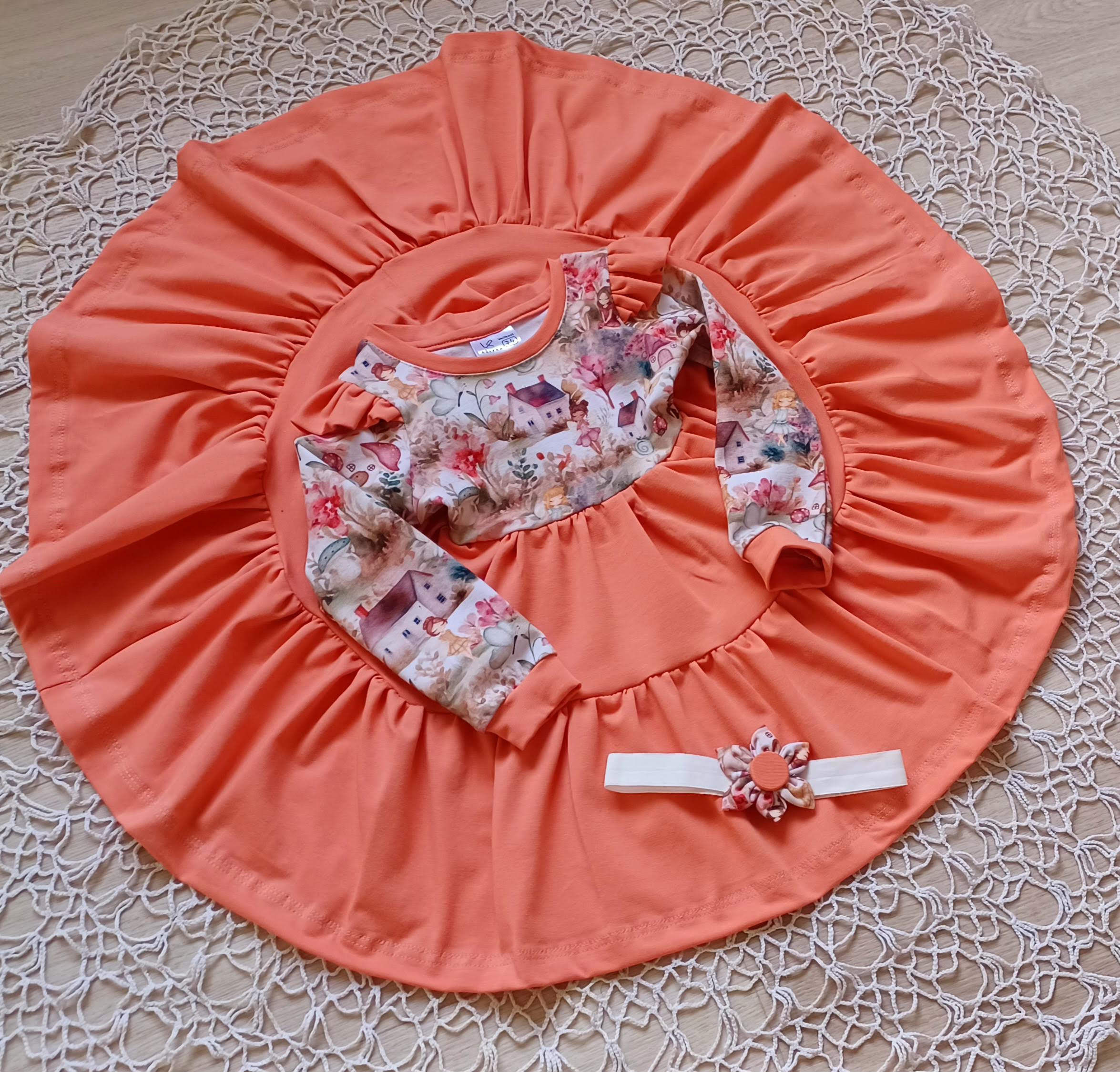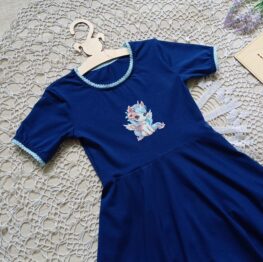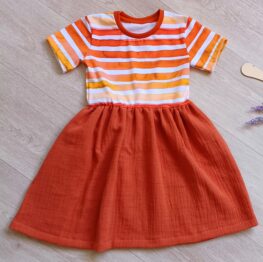 Lze ušít s dlouhým/krátkým rukávem a s půlkolovou/kolovou sukýnkou.