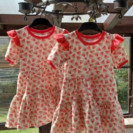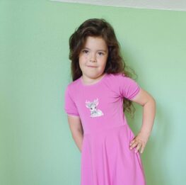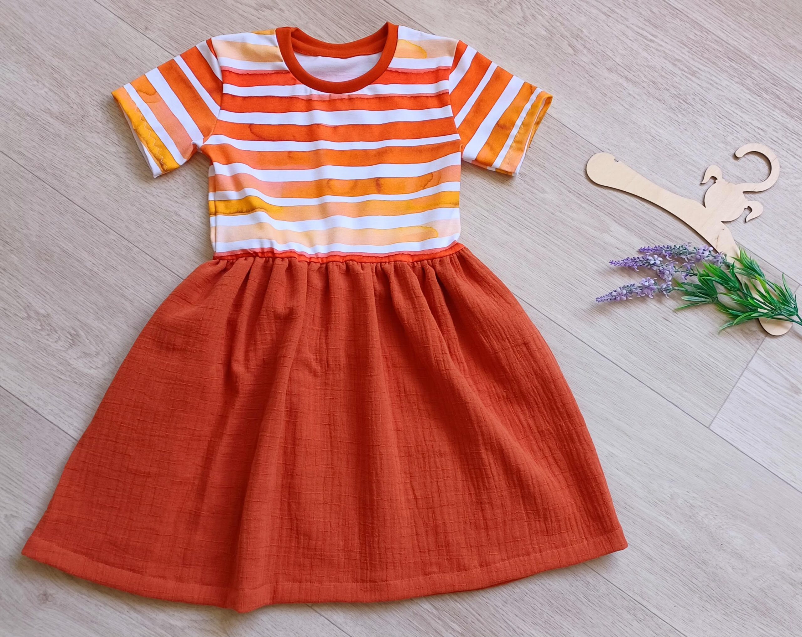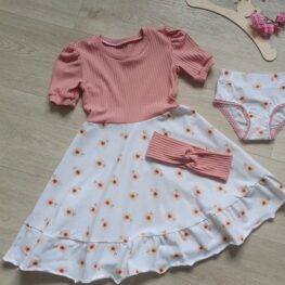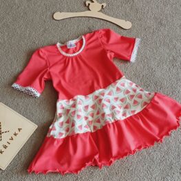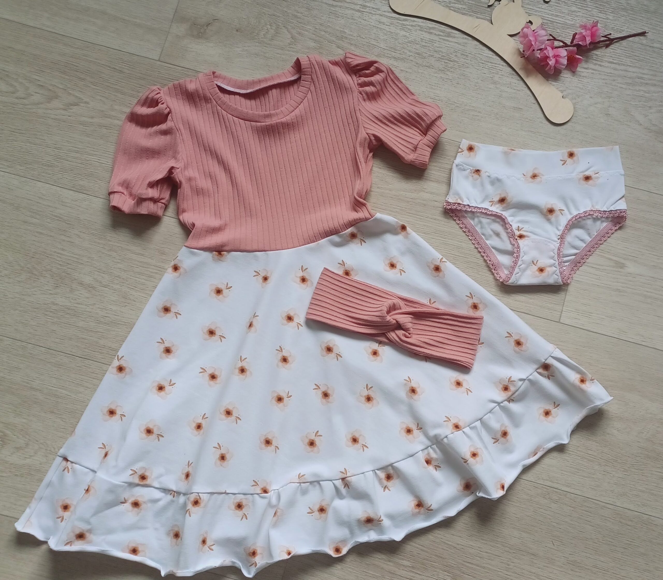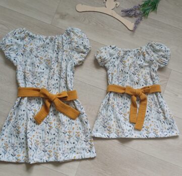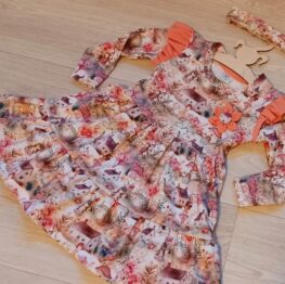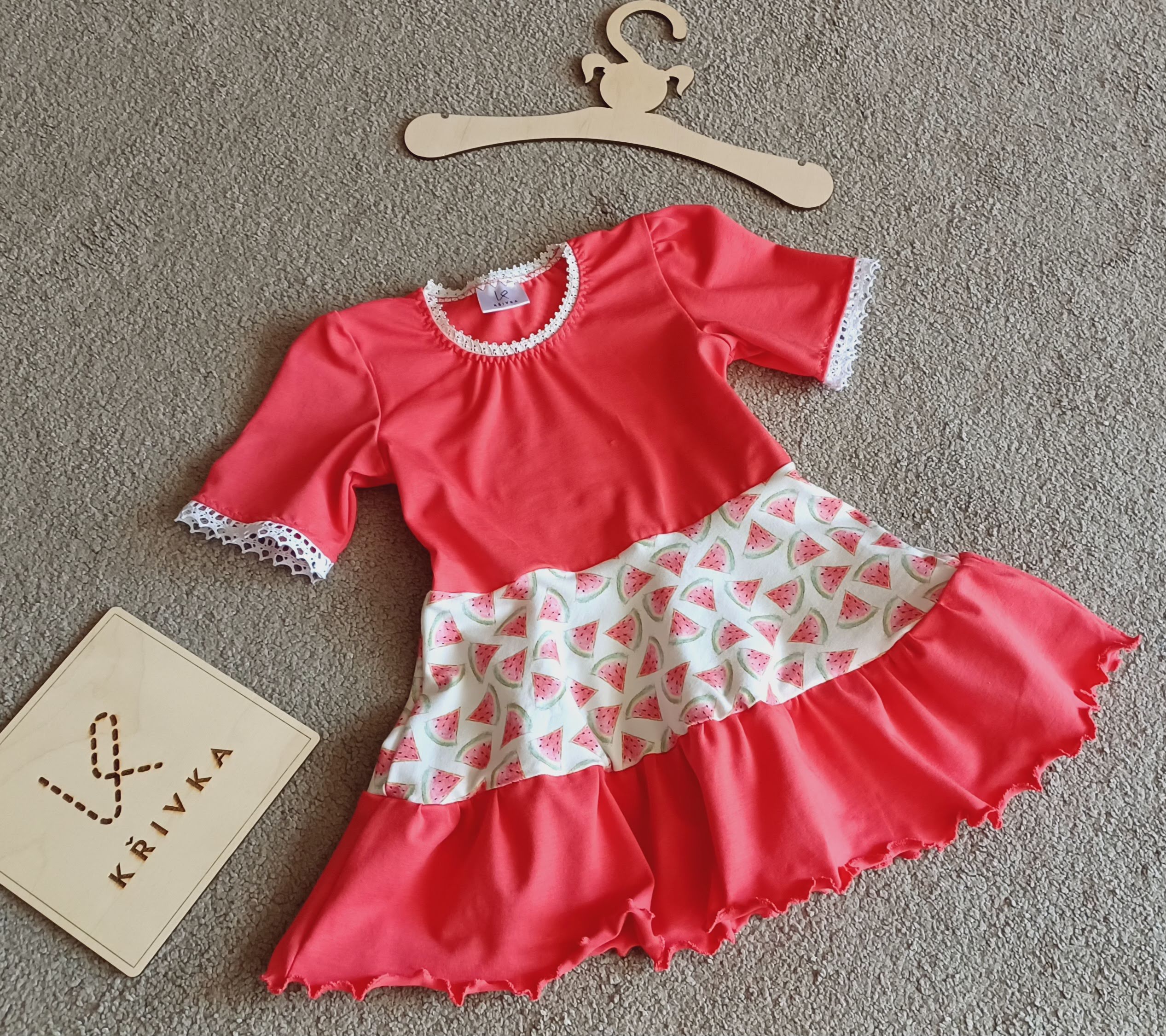 Lze ušít s dlouhým/krátkým rukávem a s půlkolovou/kolovou sukýnkou.