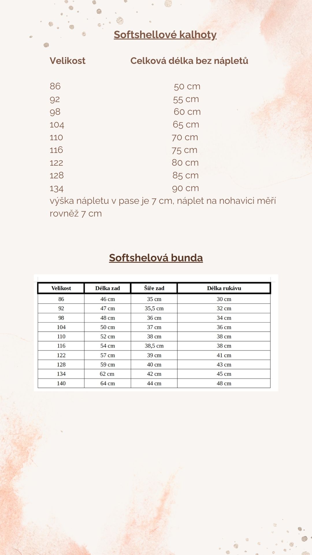 Tabulky velikostí